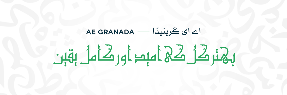 ae Granada is one of the Urdu Fonts for Facebook collected by our team. It was designed by Nadim Shaikli and launched in 2017 by MAK Alagha. It is a modern as well as a decorative Arabic font. The font has taken influences from classical Kufic script and has intricate details that increase its sophistication. It has equally-spaced letters with curved edges, beautiful serifs, pointy angles, and extended corners, providing it an attractive look. Furthermore, its consistent thickness and solid strokes makes it effective to use for short texts, pointers, and important points in your Facebook content. Whether you are making a reel or just designing a post, it is always a good option to consider. If this font fits with your design, you might want to explore some more like this in our best 12 Kufic Urdu Fonts to add a traditional calligraphic touch to your designs.