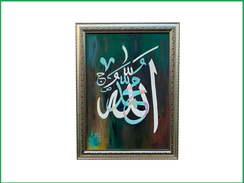 Col Qasim Malik born in 1957, is a Pakistani soldier and talented calligrapher who has held two successful calligraphy exhibitions in Islamabad. Even though he had no formal training in calligraphy, he started off with oil paintings and eventually mastered in scenic paintings considered masterpieces. He then shifted his focus to calligraphy and became known for producing modern masterpieces on hardboard with oil paints, especially verses from the Quran in Khat-e-Suls. His unique painting style has impressed many artists and calligraphers and motivated them to pursue his legacy of combining modern techniques with traditional Muslim art. Col Qasim’s method of painting, where he first paints the background and then adds Quranic verses, shows his modern approach to calligraphy. His exhibitions have been inaugurated by dignitaries like Pervez Musharraf, and his work has even been featured in the Faisal Mosque. Despite not pursuing art full-time, Col Qasim is recognized as one of Pakistan’s finest calligraphers.